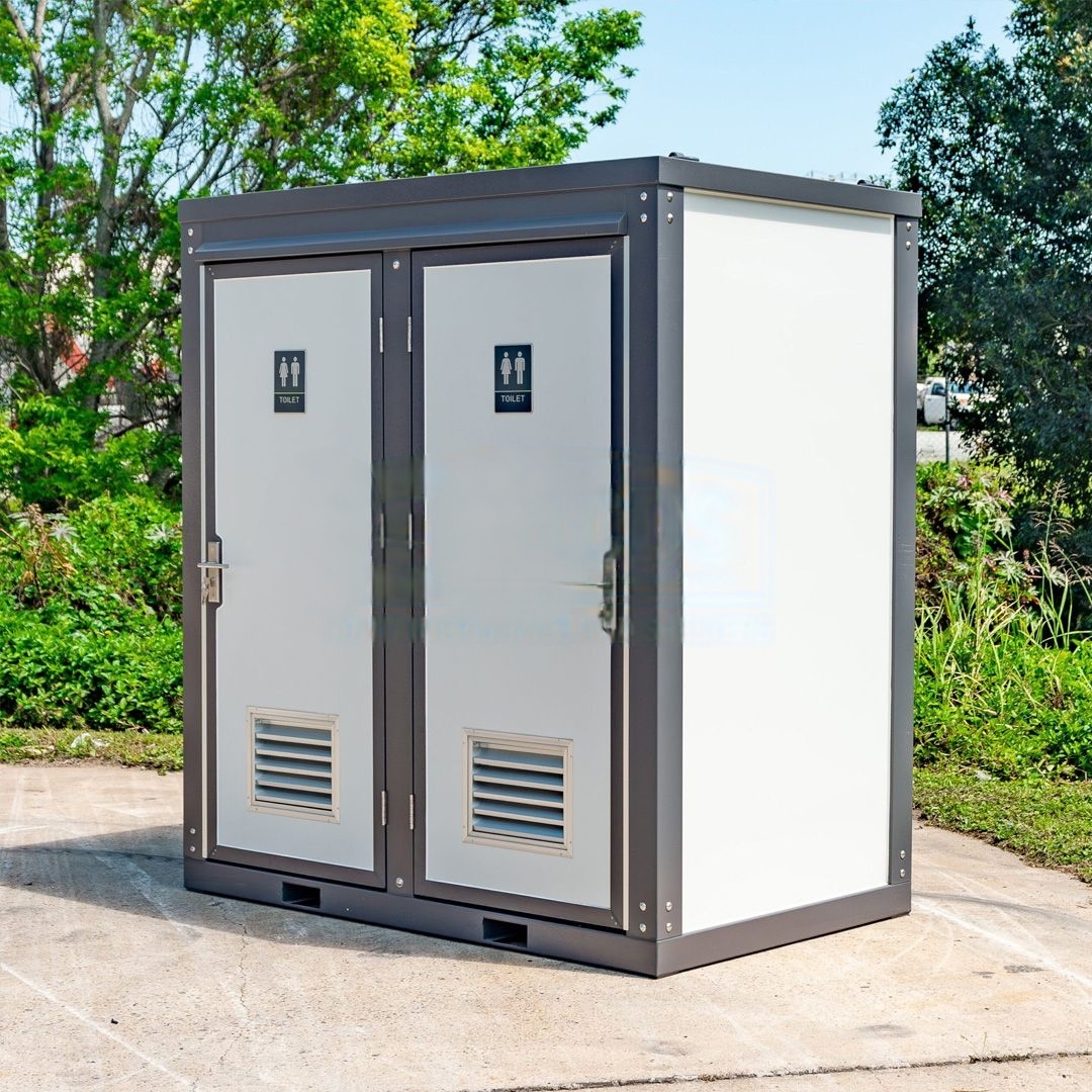 Each unit features two fully enclosed cubicles, each with its own door, lock, ventilation pipe, and waste tank. The rigid double-wall construction adds strength and stability, preventing warping and ensuring durability during frequent transport and heavy usage.