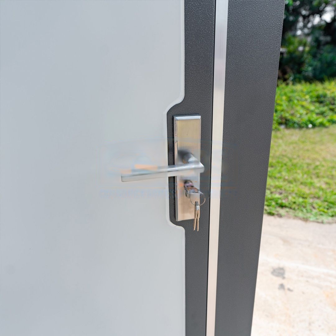 For enhanced convenience, the unit can be fitted with optional accessories such as a handwashing station, flush system, mirror, soap dispenser, and light, transforming it into a truly premium twin restroom cabin.